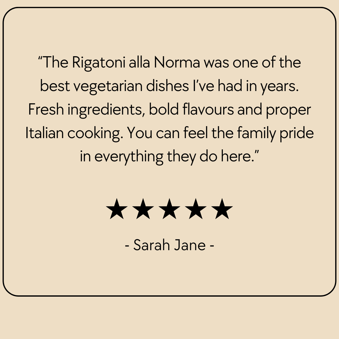 Rosario’s Kitchen began in 1987, born from Rosa and Marco Bellini’s deep love for authentic Italian cooking and warm, generous hospitality. Bringing treasured recipes from their hometown in southern Italy, they built something truly special in the heart of Ashford. Today, their daughter Sofia carries the torch — the same handmade pasta, the same Sunday sauces, the same soul. Three decades on, nothing is reinvented. Everything is simply, lovingly, passed down.